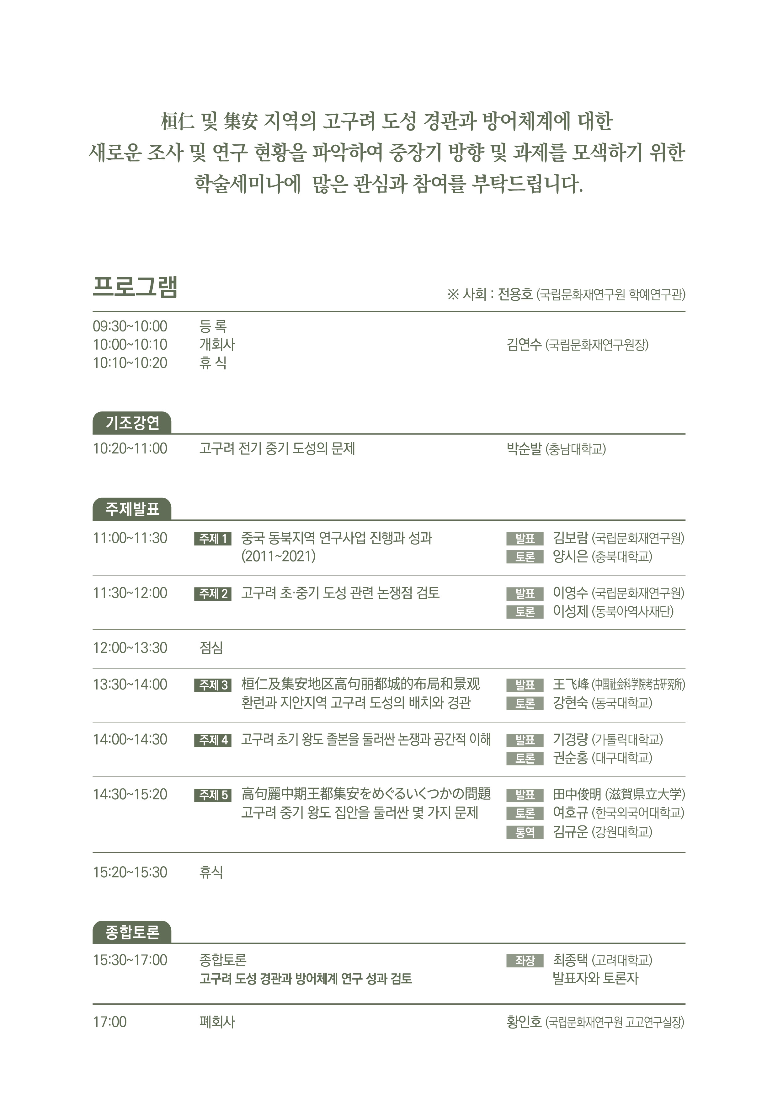 o 기타사항 : 온라인 생중계 병행(국립문화재연구원 유튜브 채널)