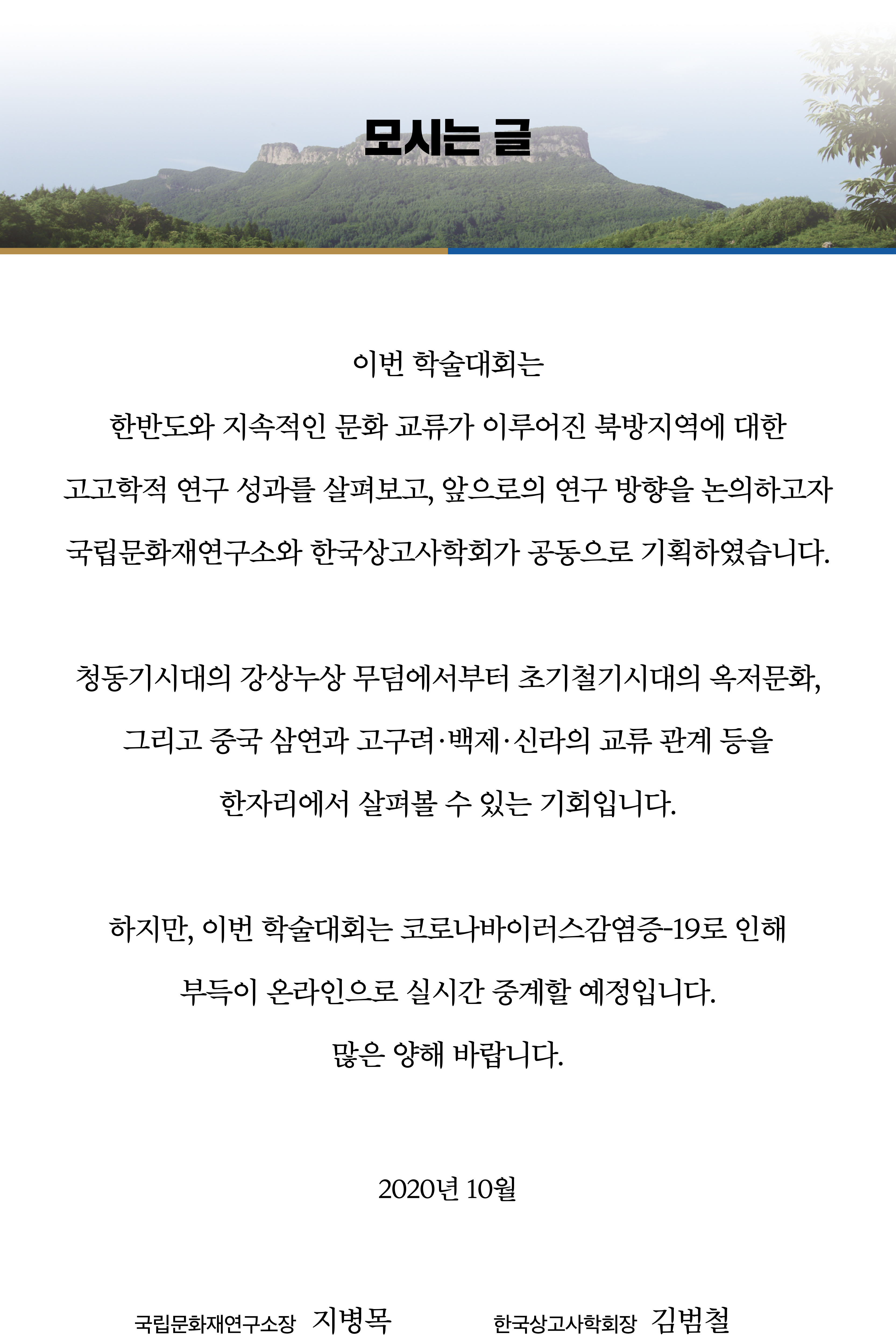 한국상고사학회와 국립문화재연구소는 <북방의 재인식 우리 고대문화 연구에서의 함의> 학술대회를 개최하고자 합니다.