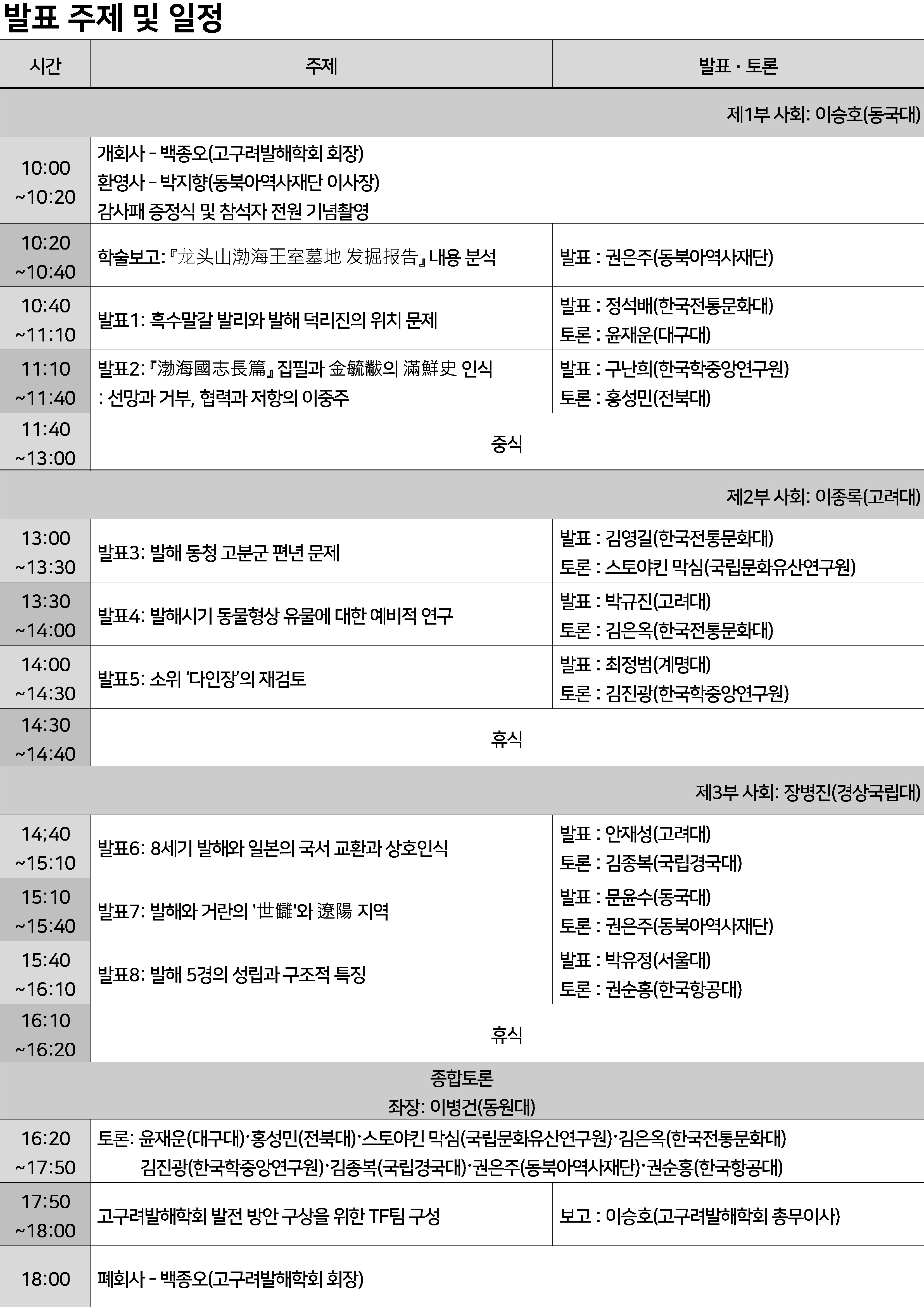 9월 20일 토요일 동북아역사재단 11층 대회의실에서 고구려발해학회
